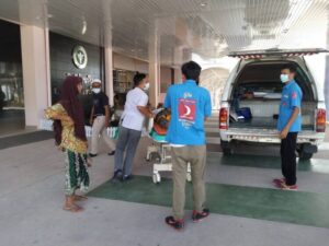 มูลนิธิฮิลาลอะห์มัร ศูนย์ปฎิบัติการสะบ้าย้อย ส.ข 1 ได้รับแจ้งจากญาติผู้ป่วย ขอความช่วยเหลือ ให้รับผู้ป่วย ม.1 บ้านคอลอมุดอ ต.จะแหน อ.สะบ้าย้อย จ.สงขลา ศูนย์จึงสั่งการรถ โมบาย01 พร้อมกำลังเข้าตรวจสอบเบื้องต้นพบผู้ป่วยมีอาการ เกร็ง เป็นพักๆ มีแผลกดทับบริเวณสะโพก ทางอาสาสมัครได้ทำการปฐมพยาบาลเบื้องต้น พร้อมจัดท่าผู้ป่วยนำส่งโรงพยาบาลสะบ้าย้อย