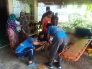 มูลนิธิฮิลาลอะห์มัร ศูนย์ปฎิบัติการสะบ้าย้อย ส.ข 1 ได้รับแจ้งจากพลเมืองดีมีชาวบ้านโดนงูกัด พื้นที่ ม.5 ต.จะแหน อ.สะบ้าย้อย จ.สงขลา ศูนย์จึงสั่งการรถโมบาย01 พร้อมกำลังเข้าตรวจสอบเบื้องต้นพบผู้บาดเจ็บ1 ราย มีอาการซึมหายใจช้า ในข่ายได้ทำการปฐมพยาบาลเบื้องต้นพร้อมจัดท่าผู้ป่วย ทีมALS รพ.สะบ้าย้อย ถ่ายระหว่างทางนำส่งโรงพยาบาลสะบ้าย้อย